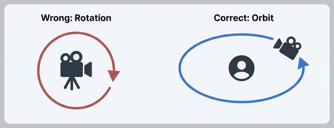 카메라가 캐릭터 주위를 "공전"해야 하는데, 제자리에서 아예 움직이지 않았다.