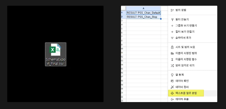 - 바탕화면에 SchemaExport.csv 파일이 생성된 것을 확인한다.