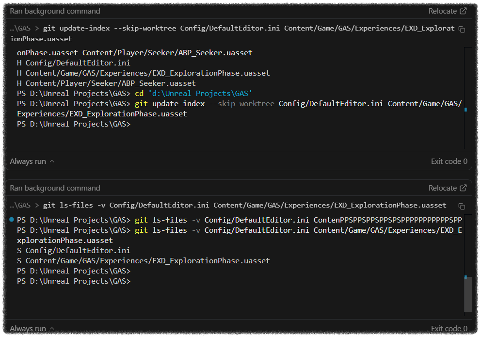 git update-index --skip-worktree Config/DefaultEditor.ini # 다시 고정